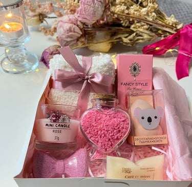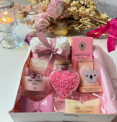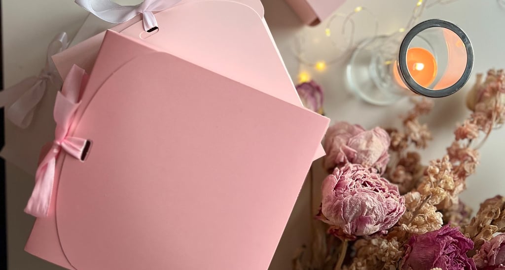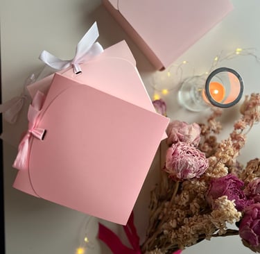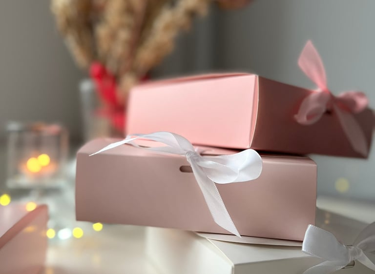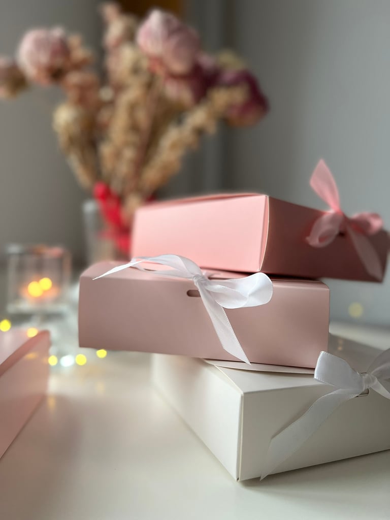 Descoperă cutii cadou atent ambalate, cu texturi delicate și tonuri naturale, în buticul roz și feminin GeorginaGrace. Perfecte pentru cadouri gândite cu grijă, care aduc bucurie și inspirație
